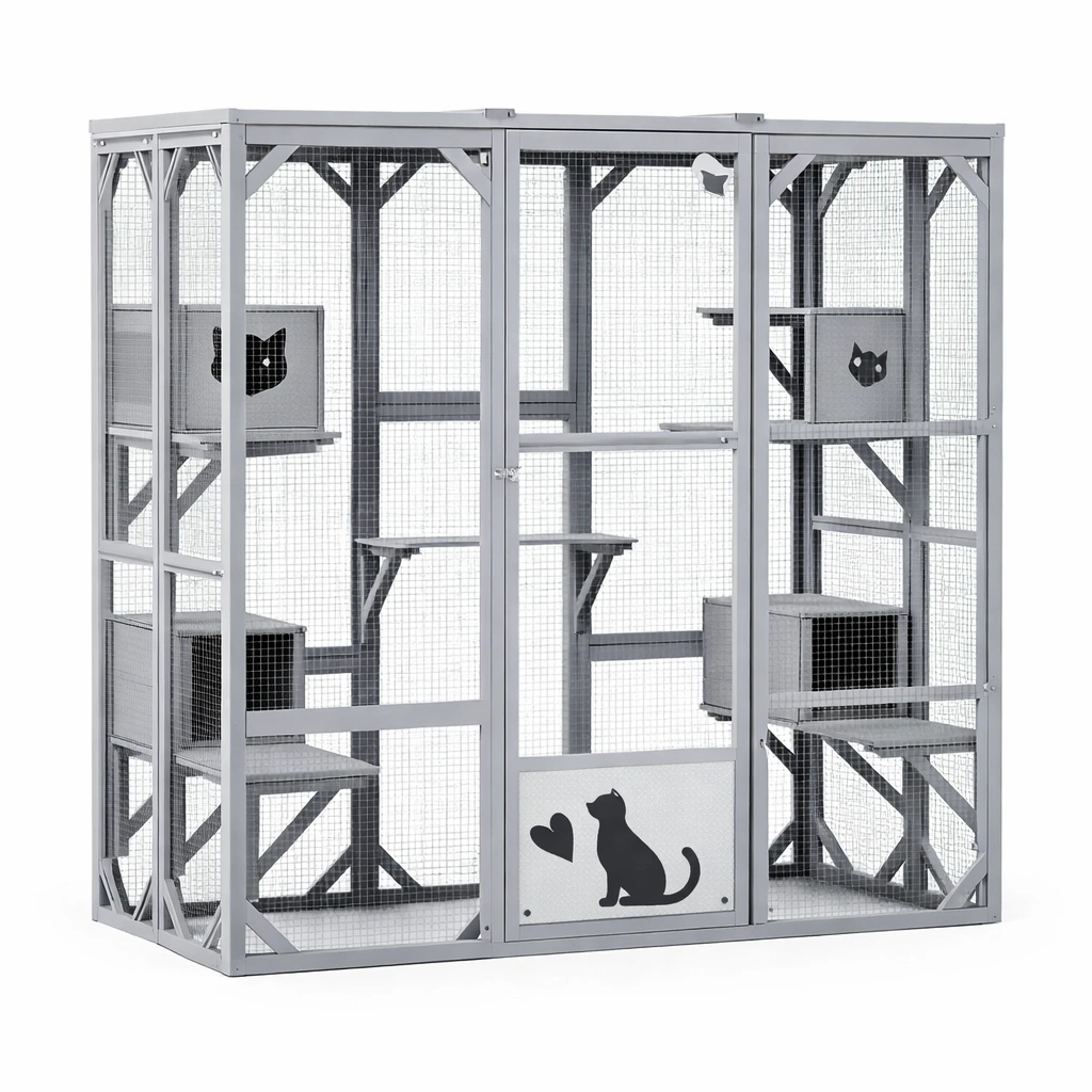 Katzengehege Massivholz und verzinkter Stahl Grau 182x120x180 cm