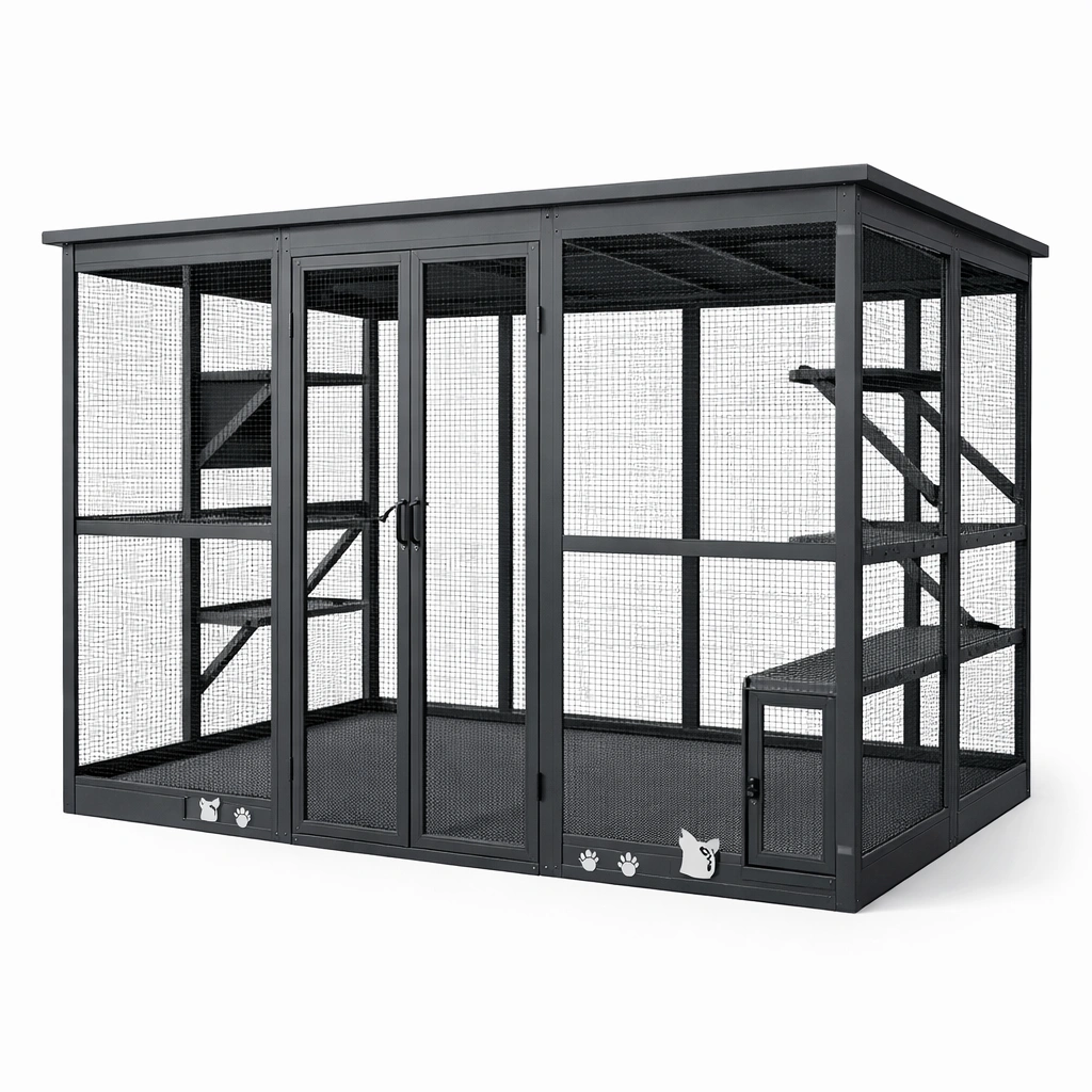 Katzengehege Metall Schwarz für den Außenbereich 180x240x120 cm
